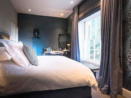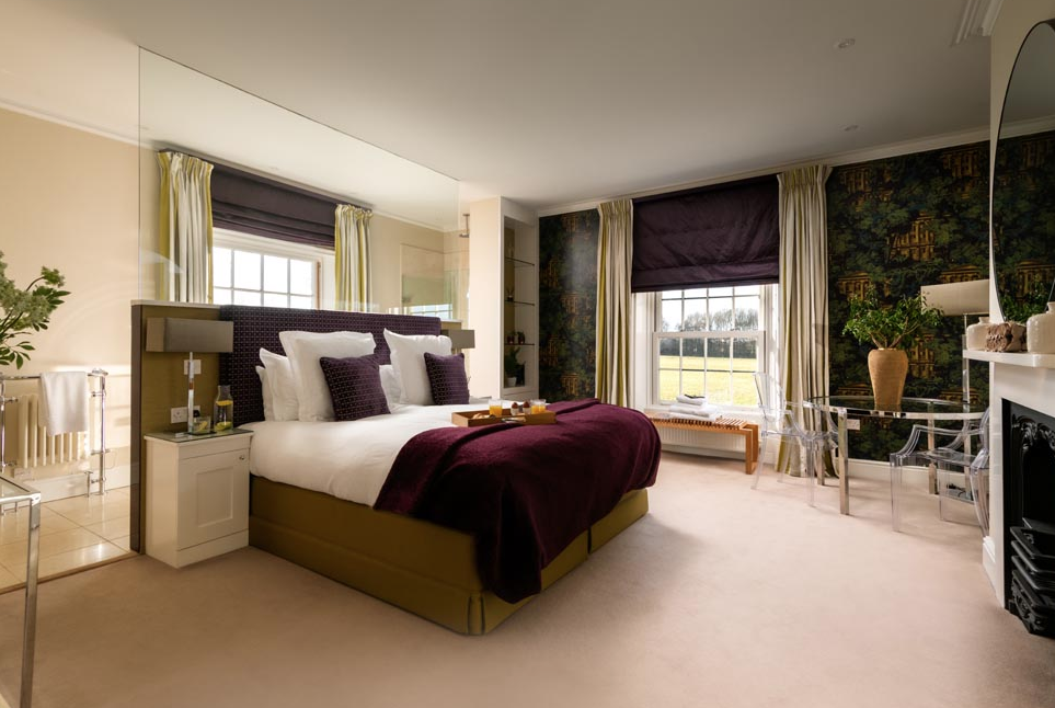 THE WOMACK. SOLD - NO LONGER AVAILABLE. The Womack is the largest bedroom in Godwick Hall and is a design sensation with the most incredible wallpaper from Christian Lacroix Maison. With sumptuous twin beds, incredible views from double window aspect and a large private ensuite with large walk-in rainfall shower.Share this room or book with a friend.